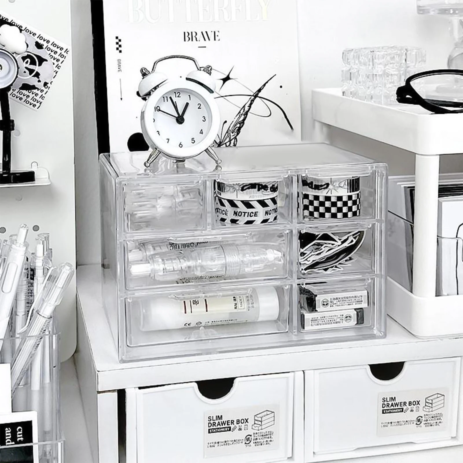 5. Easy to carry: The size of the storage drawer box is moderate and easy to carry. You can keep it on your desk or on a bookshelf, or you can take it with you when you're away at work or traveling. Its portability makes it easy to organize and store small items wherever and whenever you are.